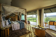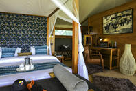 At the end of the camp, facing south-east is the inter-connected tents. Joined together with a wooden platform to allow groups or families to interact privately and away from the main part of the camp. The view from the platform is incredible and wildlife often wander freely within view. The same double and twin configurations and decor apply, it is simply an inter-connected option for those who require.