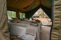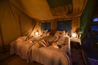 John Chase Safaris is a luxury mobile safari operation offering guided tours of Botswana’s top destinations on a mobile camping basis. Spacious Meru-style tented accommodation with en suite bush bathrooms and bucket showers are complete with twin beds, floor rugs, canvas cupboard space, and shaded canvas verandahs. All camping duties, from camp construction, to cooking, to drinks service is taken care of, leaving guests with only the responsibility to relax in these private campsites selected for their remoteness and their locations in some of the best wildlife regions in the country. A minimum of 4, and a maximum of 12 people are accommodated in utmost comfort and style while experiencing the excitement of camping in the wild. No electricity in camp, but an inverter is available for charging of camera and mobile phone batteries. Both tailored itineraries, and set-departure trips are catered for, offering exclusivity and convenience for a variety of clientele.