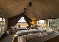 The camp is built in the classic 1950’s style. Each of the safari tents has en suite bathrooms, a living area and a romantic outdoor shower. All the tents are situated on decks and the pathways to the tents meander between the large riverine trees. The camp has two family tents and two luxury tents.