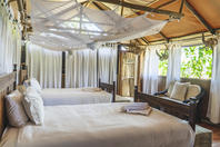 Anabezi's main camp comprises of 12 tents set in the treeline. Each of the 1000 sq ft tents boasts an indoor and outdoor bathroom; a spacious sitting area and 2 teak double beds placed encompassed by a mosquito net. Gauze sliding doors open onto an expansive wooden deck with a private plunge pool. The family unit is situated closest to one of the main areas and has a connected room with an outside shower and toilet, which comes off a private deck.