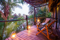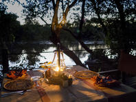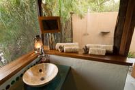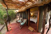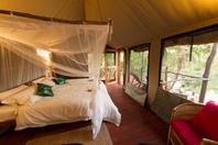 Accommodation comprises of six luxuriously appointed safari tents set under thatch and placed on raised rosewood platforms overlooking the river. Each unit has en-suite ablution facilities with hot and cold running water, an additional unique outdoor shower and 12 Volt solar lighting. They are carefully positioned to assure privacy, safety and integration with the surrounding vegetation.