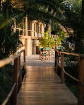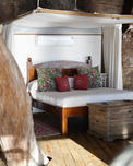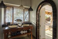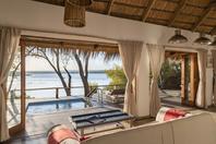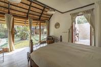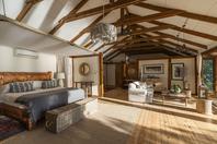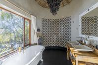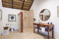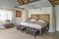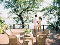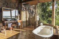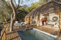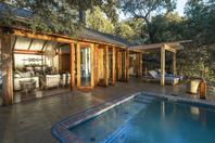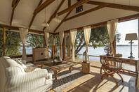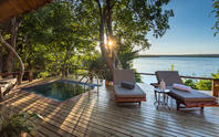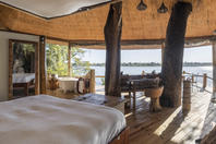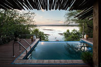 The lodge accommodates 18 guests and consists of five cottages and four spacious, open-planned stone and thatch houses. All rooms have fabulous river views and en-suite bathrooms. The four houses - Honeymoon House, Tree House, Bird House and the Dog House – are uniquely designed and constructed using local materials with an open-plan bedroom featuring a four poster double bed sheltered by a large airy mosquito canopy .The quirky and open-plan design of the houses ensures that guests have the best views in Africa. Each house and cottage at Tongabezi has valet service for the duration of the guests’ stay to ensure a comfortable experience and each valet has in-depth knowledge of Tongabezi and the surrounding area. The camp's swimming pool is landscaped into a natural cliff and meals are served in the large dining room or on the deck overlooking the river