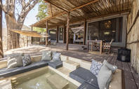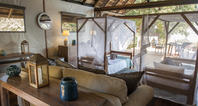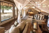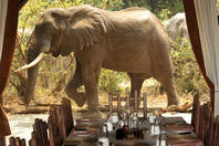 There are five classic tents, one honeymoon tent and three superior tents at Chiawa Camp, accommodating a maximum of 16 guests on an individual basis or a maximum of 18 guests if the camp is booked out in its entirety for a group. The tents all have excellent views and are accessed by paths running behind the accommodation to maximize privacy. A stunning thatched lounge/bar area with upstairs viewing deck provides one of the best views of the Zambezi. Enjoy Chiawa's renowned cuisine in the al-fresco dining veranda. After dinner, guests can retire to the campfire and enjoy a cocktail or two while taking in the sounds and magic of the African night. Guests can also take a welcome dip in the plunge pool during the heat of the day or sunbathe on the sundeck, overlooking the Zambezi River.