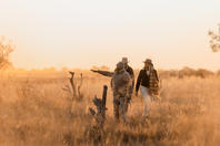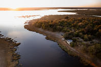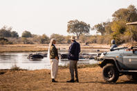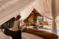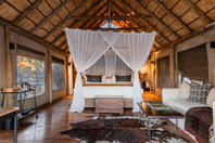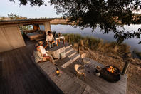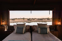 This intimate camp's accommodation is in seven large walk-in tents with en-suite facilities; each tent is raised off the ground and faces across the Savute Channel. From the camp's thatched dining area and pub, a plunge pool and large viewing area extend outwards on raised wooden decks towards the channel.