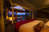 It caters for 8 guests in 4 well-appointed tents with wall-to-wall views of the spectacular wildlife that frequents the plain in front of the camp. Activities include game drives, walking safaris and night drives, led by qualified guides who are extremely knowledgeable about the area and its wildlife. For those interested in birding, the park boasts 491 species, including endemics such as Chaplin’s Barbet.