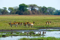 The Plains are also home to hundreds of red lechwe, ubiquitous puku, stately roan and the diminutive oribi. Lichtenstein’s hartebeest, herds of wildebeest, zebra and buffalo make for a full set of antelope. This wealth of game on the plains is also a big attraction for predators, including wild dog, cheetah and large prides of lion.