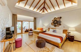 Cinnamon Dhonveli is situated on the island of the Maldives, approximately a 20-minute speedboat ride from Malé. Accommodation is comprised of a range of perfectly appointed rooms, overwater suites, and garden bungalows featuring air conditioning, minibars, coffee makers, mini-fridges, and flatscreen TVs. Facilities and services include restaurants, bars, a spa, a swimming pool, a children's playground, a tennis court, and Wi-Fi. Area activities include diving, snorkelling, dolphin spotting, surfing, and fishing.