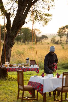 Nasikia presents Kaskaz Mara Camp, a short drive from Kogatende Airstrip and the exciting Mara River viewing area. The ten tented suites are superbly located to provide a indulgent base for optimal migration viewing all through out the year. With large netted windows and draped roofing in each suite for Serengeti-style air conditioning, cotton curtains dancing on the breeze, oversized beds, indoor and out door furnishings of style, expansive floor space, great hardwood double vanities, handcarved decor with Swahili flair; the camp proposes style and grace in the far northern Serengeti. The camp is available for drive in or game package clients, all while taking special care to illustrate the unique environment they are welcomed to. Tailoring the tents to group configurations from honeymooners to larger families, the camp personnel are on call 24 hours to ensure that everyone is content in their stunning environment.