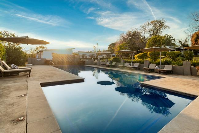 The Pool Suite apartment has a Queen bed, direct pool views, double rollaway bed, bathroom, flat screen TV, electronic safe, air-con, kitchen, comprehensive DSTV package, underfloor heating, electric blankets. Full breakfast and WI-FI included