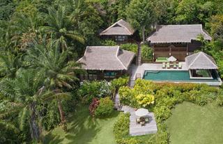Set on higher grounds, away from the beach and main facilities, tranquility and escape merge effortlessly in each of these one-bedroom villas, where stylish indoor living spaces blend seamlessly with the luxuriant tropical setting. The master bedroom is a retreat in calming natural colors bathed in natural light through floor-to-ceiling windows overlooking the garden courtyard and terrace. A separate living and dining room provide residential-style comfort and convenience. The sumptuous bathroom includes double vanities and an outside courtyard with deep soaking bathtub and rain shower. Elegance extends to outdoor living on the sun terrace with daybed, sofa and private pool with partial ocean views over the Andaman Sea. Connecting rooms through the courtyard are available to create a second bedroom. The combined interior and exterior of these villas is generously sized at 211 square meters (2,271 square feet.)