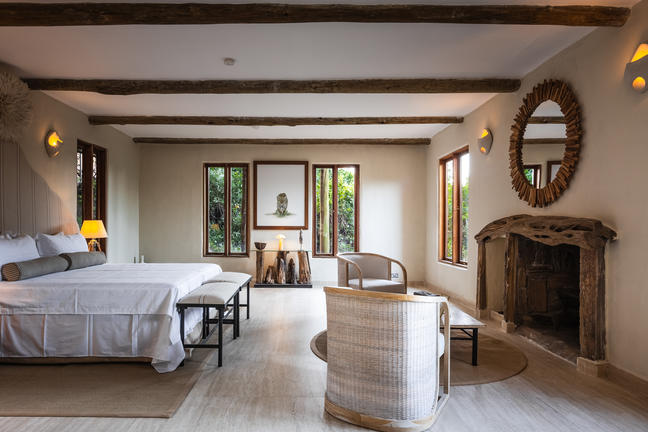 Balcony / Deck, Bath, Complimentary Wi-Fi, Detached Private Bathroom, Dressing Gowns, Electrical Outlets, En-Suite, Fireplace, Fridge, Hair Dryer, Heated Towel Rails, Heater, Internet Access (Complimentary), Iron / Ironing Board, Laundry Facilities, Laundry Service (Complimentary), Lounge Area, Mini Bar, Mini Bar (Complimentary), Outside Shower, Pure Cotton Linen, Safe, Satellite / Cable Television, Shower, Tea / Coffee, Television, Verandah