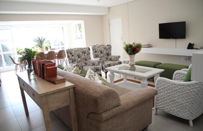 La sala comune si apre su un ampio patio coperto con vista sul mare, dove potrete rilassarvi da soli o con un visitatore o socializzare con altri ospiti. Abbiamo anche attrezzature per barbecue comunali/braai presso la vasca immersione ad acqua fredda.