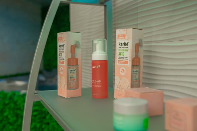 Pflegeprodukte, Handtücher und Pflegeprodukte.