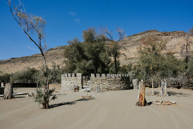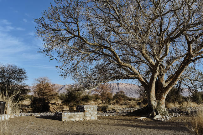 Sesriem Oshana Campsite is situated close to the southern end of the quiet and lush Naukluft Mountains within the Namib-Naukluft National Park in Namibia. Visitors can pitch their tents or park their camper trailers or caravans on the designated self-catering campsites. Facilities include private bathrooms, kitchenettes, barbecue sites, a bar, a restaurant, and a swimming pool.