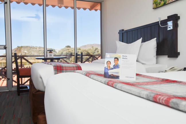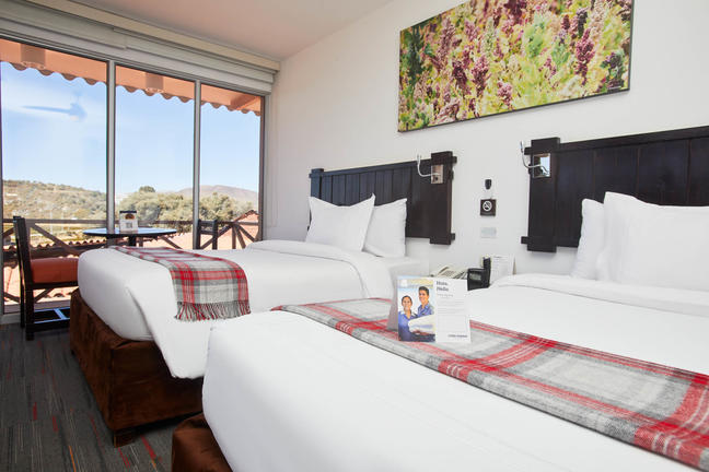 The Adobe Junior Suite Twin has 2 single beds, small living room, mnibar, infusion zone, big private bathroom, terrace with a good view to the colca valley.