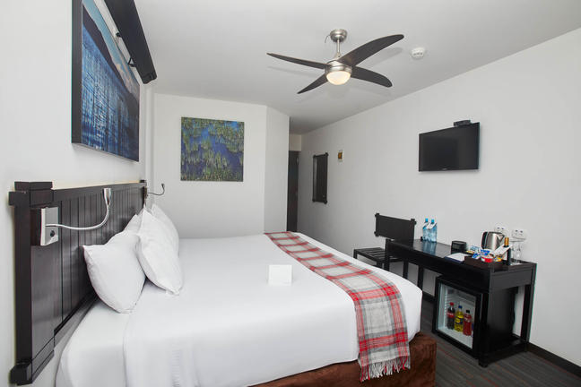 It’s a comfortable room. It has 1 king-size bed (200 cm x 203 cm), carpet, and other services that will allow you to have a great experience. It’s ideal for couples looking for a cozy and special atmosphere to enjoy an unforgettable moment.