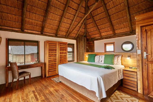 Die Lodge umfasst 20 freistehende, klimatisierte Luxus-Zeltchalets, die mit komfortablen Doppelbetten, privaten Terrassen, Küchenzeilen, elektrischen Anschlüssen sowie eleganten, freistehenden Bädern inklusive Toilettenartikeln ausgestattet sind. Nach einem erlebnisreichen Tag können Gäste im hauseigenen Restaurant köstliche namibische Spezialitäten geniessen, an der stimmungsvollen Bar mit einem kühlen Drink entspannen oder im Pool mit Blick auf die Elim-Düne Erfrischung finden.
