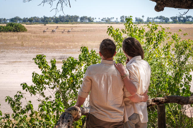 Savuti Camp is set deep in the wilderness on the productive Savute Channel – a refuge for a variety of wildlife. For many years the channel was dry, before the waters returned in 2008 and abundant game congregated around and adapted to their new surroundings. As part of a natural cycle, the channel is dry once more, resulting in a rich feeding ground and corridor between the surrounding mopane woodlands for both plains game and predators. Savuti is about 17 kilometres “downstream” from the Zibadianja Lagoon – the source of the Channel. Accommodation comprises seven large en-suite canvas-and-thatch rooms (including a family unit) that are raised off the ground and face onto the Savute Channel. From the thatched dining area, a pool and large viewing area with fire deck extend outwards on raised wooden decks. Activities on offer are day and night game drives, nature walks with a guide (depending on qualified guide availability) and boating (water levels permitting).