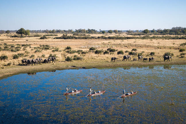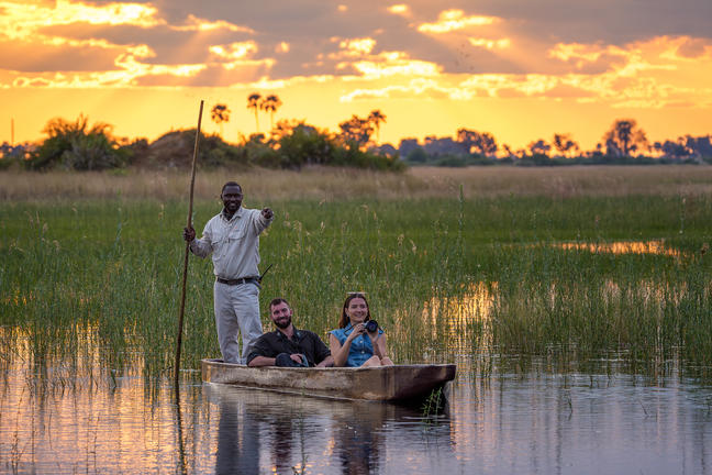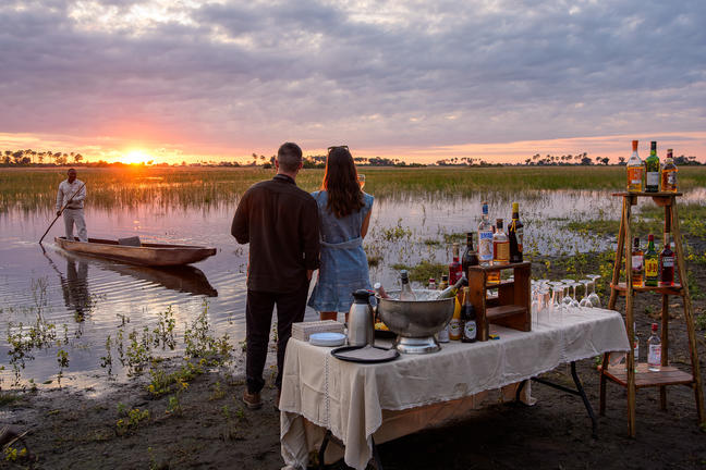 Guests enjoy both day and night game drives in open 4x4 vehicles, with wildlife movements influenced by seasonal water levels, ensuring every stay offers a dynamic and varied safari experience. During high water months (typically May to September), boating, seasonal fishing and mokoro excursions provide an additional water-based perspective of the Delta.