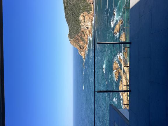 The glass, white leather, marble and natural oak finishes blend to form a striking design, highlighted by clever lighting. The large photographic panels on the walls offer an outdoor perspective of the Plettenberg Bay area.