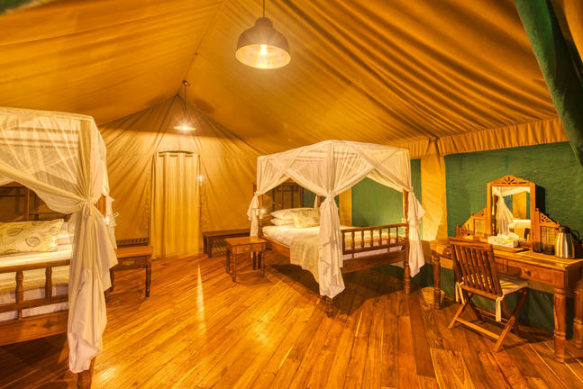 Each well-appointed Beach Tent has been strategically positioned to offer guests privacy, while still allowing easy access to the beach and communal areas. Each Beach Tent is on a raised platform; delivers 24-hour electricity and hot and cold running water. The tents provide self-contained mosquito nets around the beds and bathroom.
