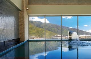 Mezi luxusními hotely v Paro tyto nadrozměrné volně stojící vily vynikají velkým obývacím prostorem s bhútánskými kamny na dřevo Bukhari, kuchyní se vstupem pro personál a soukromou místností pro lázeňské procedury. K dispozici je atmosférické venkovní posezení s výhledem na borové lesy, zatímco z vany je ještě dramatičtější výhled do údolí Paro.