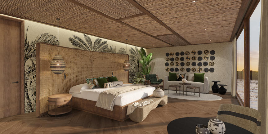 A sanctuary of elegance and comfort, the Amazon Explorer immerses you in the spirit of this remarkable destination. Interiors inspired by Peruvian craftsmanship showcase intricate Shipibo mosaics and rainforest designs, creating a seamless connection to your surroundings. With curated spaces, including the River Retreat and Explorer Centre, and suites among the most spacious in the region, every moment aboard promises luxury.