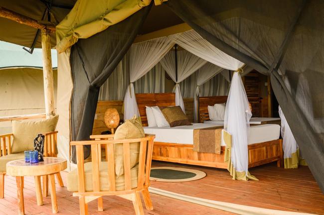Permanent luxury tents. Located only 10 minutes from Tarangire National Park, Lake Burunge Tented Camp consists of 30 rooms with en suite facilities. Among them 6 family tents, that consist in two interconnected rooms.
