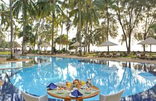 Bluebay Beach Resort & Spa is a luxury five-star retreat located on Zanzibar’s east coast, nestled along the island’s finest white-sand beach. Guests can discover the historic Stone Town, tour spice plantations, and browse vibrant local markets during day trips across the island. Rooms feature hand-carved furniture, private verandas, air conditioning, satellite TV, and complimentary Wi-Fi. Dining options include the Makuti Restaurant, Bahari Grill, Trattoria, The Wok, and Bludeli Terrace Café, offering fresh seafood and international cuisine. Guests enjoy access to the Oasis Spa, water sports, a fitness centre, and tropical gardens with over 1,000 palm trees.