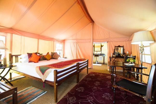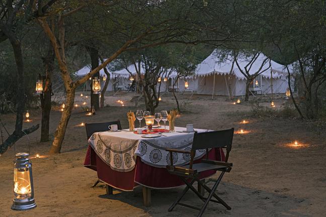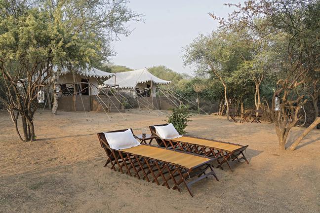 Dera Amer is a distinctive luxury wilderness camp located in protected scrubland near Jaipur in Rajasthan. The camp provides spacious luxury tents with safes, hot water bottles and high‑quality luxury linens. Guests can indulge in a selection of expertly prepared dishes at the on‑site restaurant. Leisure facilities include a natural swimming pool. Guests can take part in activities such as village walks, bathing with the elephants or birdwatching.