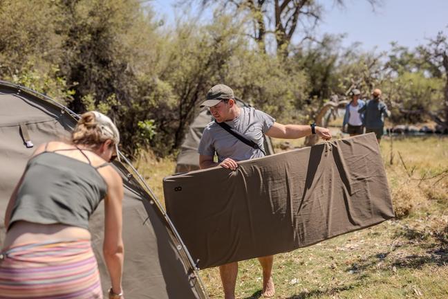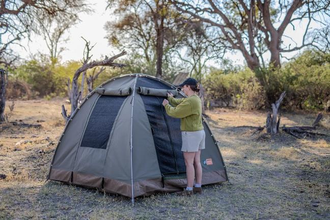 Bush Ways Botswana offers adventure journeys to the heart of Africa, offering small group safaris to discover the magic of the African bush. While on the Adventure Camping mobile safari, guests are only required to pitch and fold their own tent. All cooking, cleaning and any other camp chores are taken care of by the Bush Ways Safari team, made up of an experienced local safari guide and a camp assistant. We provide 2.1m x 2.1m x 1.75m dome tents and a comfortable 5cm high density foam mattress. We mostly camp in areas with no formal ablutions, and therefore build our own bush toilet and shower when camping in these areas.