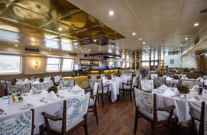 Sailing through the idyllic Seychelles, the Pegasos is a sleek yacht offering an intimate cruising experience. The ocean-view cabins feature modern amenities such as air conditioning, flat-screen TVs, minibars, and private bathrooms. Guests can enjoy dining in both indoor and outdoor dining areas, complemented by a full-service bar and lounge areas with panoramic views. Additional onboard facilities include a mini spa suite, library, snorkeling equipment, kayaks, and a swimming platform.