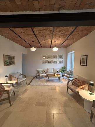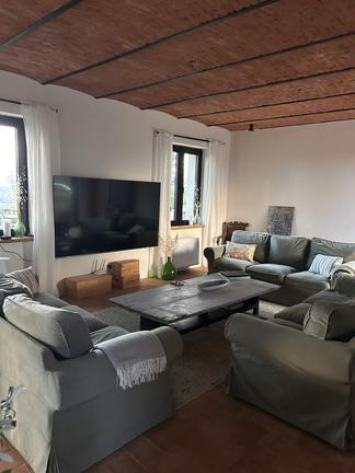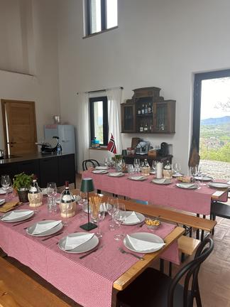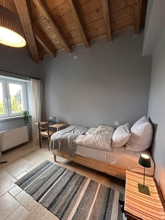 Eiendommen har totalt 120 hektar land og består av et nyrenovert hus og en låve. 26 senger fordelt på 13 soverom (12 bad), 2 kjøkken, et treningsstudio, en vinkjeller og flere stuer. En utendørs pergola med pizzaovn og et stort(12 x 6 m) svømmebasseng med en stor solterrasse står også til din disposisjon. Sengetøy, dusjhåndkle og badehåndkle på rommene.