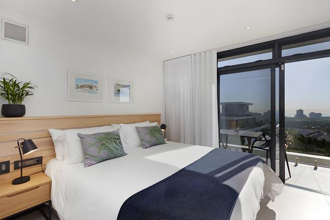 A private, sunny and spacious suite that opens out onto a balcony & offers self-catering facilities. Views are over the lagoon and to the famous Knysna Heads. En-suite bath, shower and double basins. Super queen bed in the main bedroom. Air-cons.