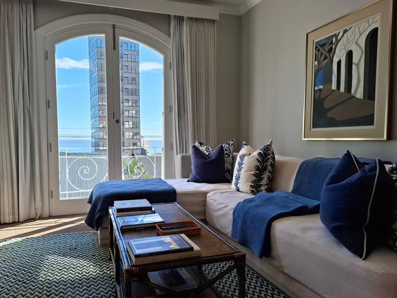 This spacious and elegant 2-bedroom apartment accommodates 4-5 Guests and offers a fully equipped kitchenette, generous open-plan living areas, private balcony and fireplace and is perfect for relaxing or entertaining with stunning views of Sea Point and the ocean.