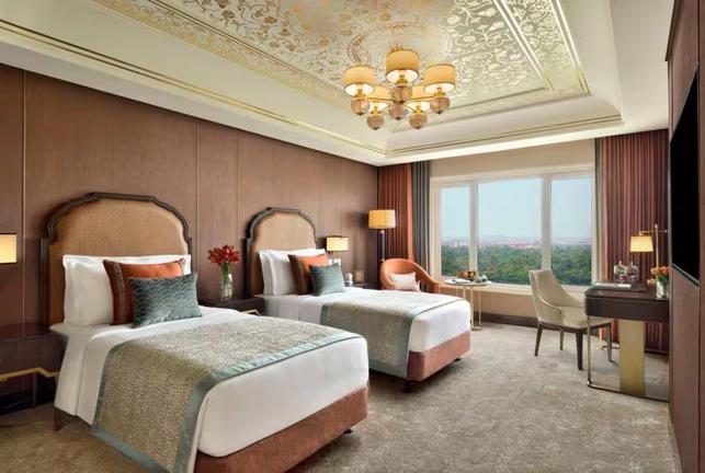 Taj Mahal, New Delhi is a luxury hotel located on Mansingh Road in the heart of Lutyens’ Delhi, close to India Gate. Guests can explore nearby attractions such as the Red Fort, Humayun’s Tomb, Lodhi Gardens, and Dilli Haat. Guest rooms feature minibars, electronic safes, tea and coffee facilities, complimentary Wi-Fi, flat-screen TV, and private bathrooms. Dining options include Machan for international cuisine, House of Ming for Chinese specialities, Varq for modern Indian dishes, Emperor Lounge, Captain’s Cellar, and Rick’s bar. Facilities encompass the J Wellness Circle, swimming pool, elegant banquet spaces, concierge services, and curated cultural tours.