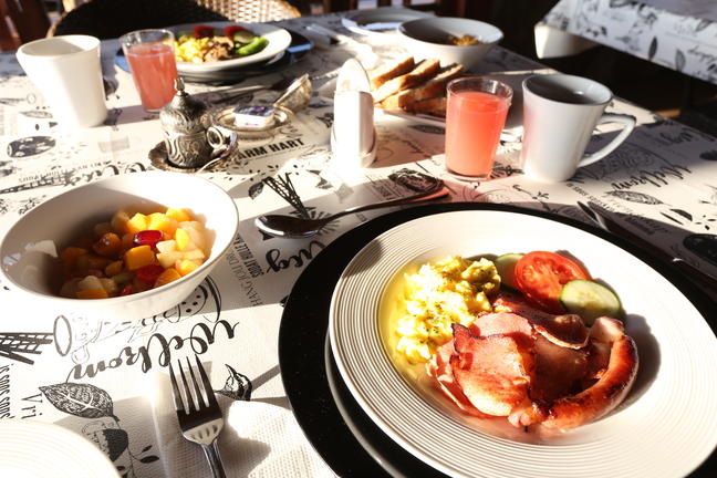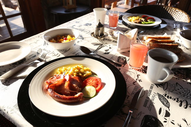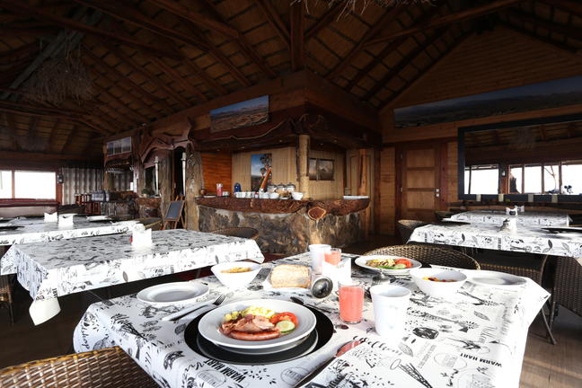 Our rooms offer comfort and convenience, equipped with mosquito nets, air-conditioning, coffee/tea stations, and outdoor sitting areas. Enjoy delicious meals served from our Buffet and Grill area, featuring a variety of local Game Meats. Relax at our Bar with an extensive wine list, and local Wines, Gins, and Beers.