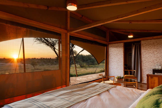 With eight elegant safari tents, the camp lies in the Eastern Serengeti, an area known for big cats including a melanistic (black) serval and the region’s largest cheetah population. The Great Migration moves through the region on its annual journey to the nutrient-rich grasslands of the southern plains.