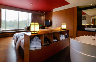Rest and relax on the Garden Wing Deluxe Garden View Room balcony. Guests get to choose a room on the ground floor or high floor, enjoy a bird's-eye view of the meticulously manicured garden or easily explore the gardens via the personal pathway, a special feature for the ground floor rooms. The room decor comprises an inviting blend of traditional and modern styles with an outdoor patio.