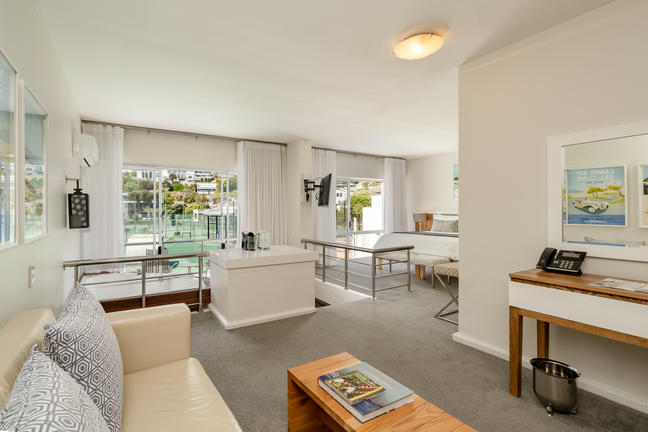 This room features a private balcony with partial views of Camps Bay main beach and Lion's Head. The room is fitted with an extra length king size bed that can be converted to twin beds, en-suite bathroom with shower and lounge area with one additional daybed for children.