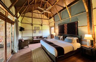 Diphlu River Lodge lies on the edge of Kaziranga National Park in Assam, India, offering guests a serene retreat into nature. Nearby attractions include the UNESCO World Heritage Site of Kaziranga, famed for its one-horned rhinoceroses and Royal Bengal tigers. Guest cottages feature comfortable beds, writing desks, minibars, spacious seating areas, and coffee and tea making facilities. Guests can enjoy freshly prepared meals at the lodge’s on-site restaurant overlooking the river. Facilities include guided safaris, cultural experiences, and eco-friendly initiatives that support local communities, making the lodge both a luxurious and responsible choice for exploring Assam’s wilderness.