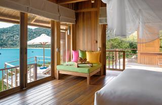 With views of the East Sea from each of the three lavishly appointed bedrooms, the 520-square-metre butler-serviced sanctuaries are ideal for a luxurious get-together with friends or family. Each en-suite bathroom opens out to tropical gardens and a private outdoor rain shower. Lushly landscaped grounds include a heated swimming pool, a lotus pond, and a separate pitched-roof living and dining pavilion.