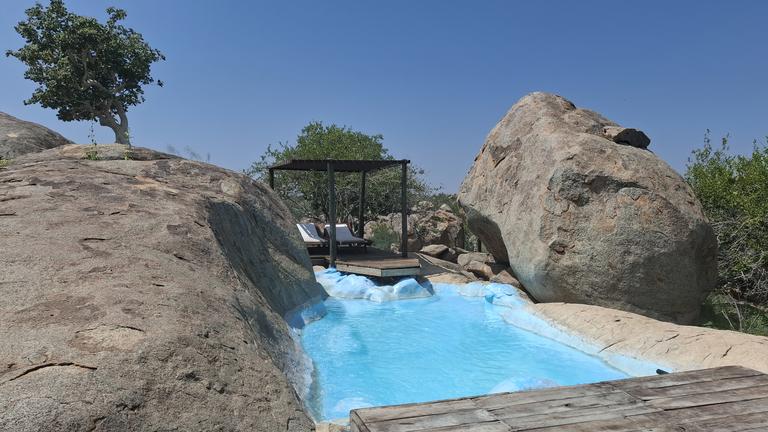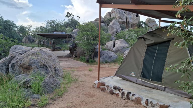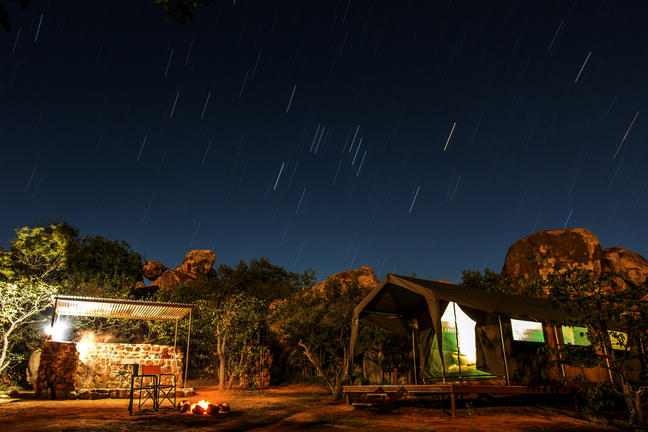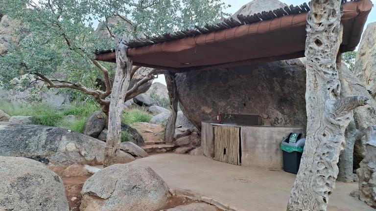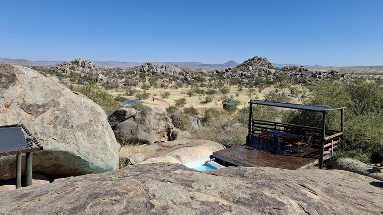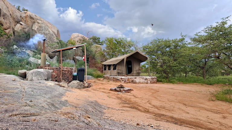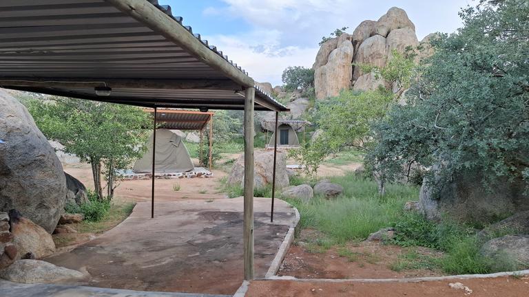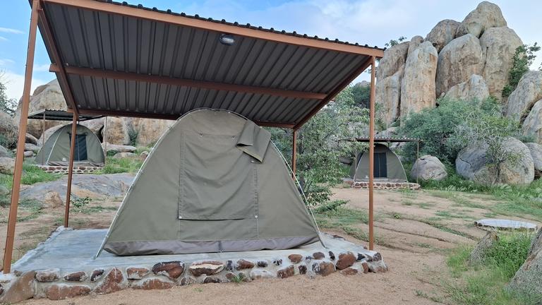 Hidden among large grey granite boulders and Mopani trees, Hoada Campsite offers travellers a serene home in the wilderness of Namibia. Accommodation includes six luxury campsites with ample designated areas for tents or vehicles with rooftop tents, and permanent tents are available for hire. Each campsite boasts its own braai area and kitchen facilities with running water. There are also ablution facilities, with flush toilets, hidden amongst the rocks.