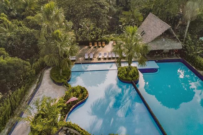 BioHotel Arara River is een boutique‑eco lodge diep in het Colombiaanse Amazonegebied, op ongeveer 35 minuten per boot vanuit Leticia, gelegen aan de oevers van de Amazone in de inheemse Arara‑gemeenschap. Het hotel combineert moderne architectuur met Amazonische invloeden en biedt comfortabele kamers met privébadkamer, balkon of terras en panoramisch uitzicht over het regenwoud of de rivier. Het hotel legt de nadruk op duurzaamheid en samenwerking met de lokale Arara‑gemeenschap en hanteert zelfvoorzienende praktijken om natuur en cultuur te ondersteunen. Gasten kunnen genieten van een buitenzwembad, begeleide wandelingen in de natuur, kanotochten en het spotten van wilde dieren, waaronder roze rivierdolfijnen, in een van de meest biodiverse gebieden ter wereld. Het restaurant serveert regionale Amazonische gerechten en het personeel regelt tours en excursies, waardoor het verblijf een rustige en authentieke jungle‑ervaring biedt voor reizigers die comfort, avontuur en ecologisch bewustzijn zoeken.