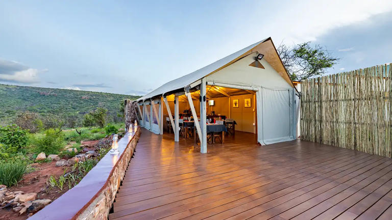 Bateleur Safari Camp is nestled in the Timbavati Private Nature Reserve, adjacent to South Africa’s Kruger National Park. The camp features a variety of accommodations equipped with modern amenities and private bathrooms. Guests can enjoy facilities such as an outdoor swimming pool, a wooden deck, and parking. Activities available include walking safaris, game drives, and bush walks.