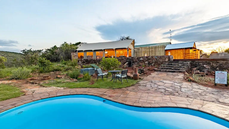 Traditional South African food in a convivial atmosphere, with dinner around the campfire when the weather permits. Unspoiled African bush and indigenous forests are a haven for more than 200 different bird species and numerous migratory species of wildlife. Relax at the pool, enjoy the views from the terrace or explore the pristine natural environment on one of many nature walking trails. A maximum of 16 guests per night can enjoy luxury and elegance in a relaxed and convivial environment. Personal service and attention to detail will ensure an unforgettable experience.