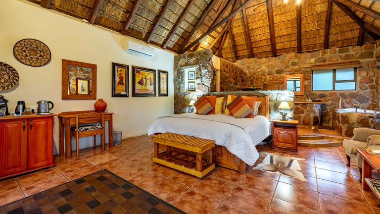 Lodge Afriqué is a 4 star guest house with eight free-standing luxury thatched suites, each with full Afro-Victorian bathrooms. Lodge Afriqué can cater for up to 16 people at a time. The spacious and luxurious air conditioned suites, each with a private outdoor shower and patio which is situated in a tropical garden with a sparkling pool. All the suites are connected to the central lodge by a raised wooden deck pathway over the beautiful subtropical garden. (ITT)