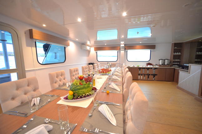 M/C Galapagos Seaman Journey is a 27.6-metre luxury catamaran featuring voyages around the Galapagos Islands. The 16-passenger catamaran offers comfortably furnished cabins to ensure guests enjoy a relaxing and peaceful cruise. Facilities include a dining room, a bar, and a lounge area. Activities include swimming, snorkelling, kayaking, and exploring one of the many islands.