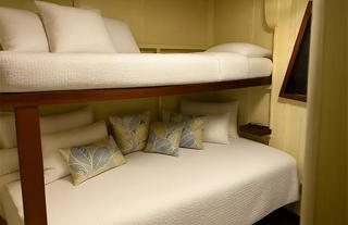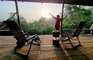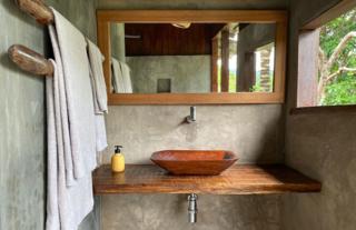 The lodge offers spacious rooms, each with private hot showers, toiletries, and daily housekeeping, providing a comfortable base surrounded by nature. A private deck with hammocks invites you to unwind to the sounds of the forest, while a shared open-plan kitchen, stocked with fresh local produce, reflects the property’s simple, sustainable approach.