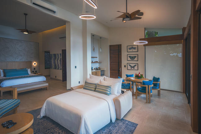 All immersed in nature, the Two-Bedroom Villas will be the perfect option for family or a party of six. A master bedroom with an ultra-comfortable king bed and a second bedroom with two queen beds bookend the large common areas. Each bedroom features an independent full bathroom.